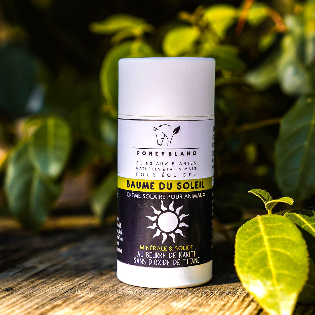 • Le BAUME DU SOLEIL est une crème solaire solide sous forme de baume qui apporte une protection solaire efficace aux chevaux et aux animaux.